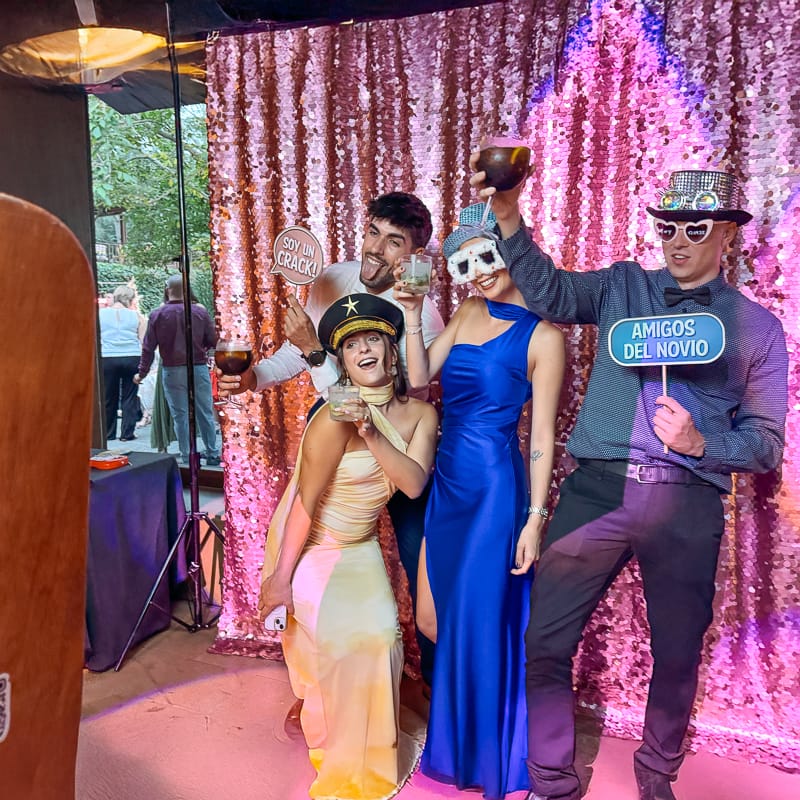 En cada boda contamos con dos animadores profesionales que permanecen durante todo el servicio. Se encargan de animar a los invitados, ayudar en el uso del fotomatón y asegurar que todo funcione sin interrupciones.