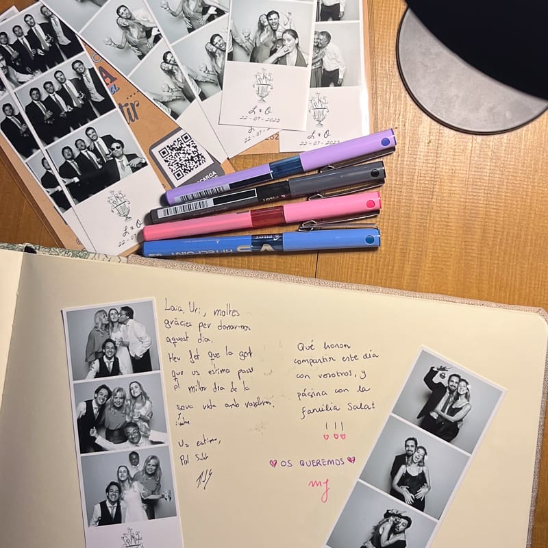 Uno de nuestros técnicos estará pendiente en todo momento de ir pegando las fotos en el álbum a la vez que invita a los invitados a escribir un mensaje junto a su foto